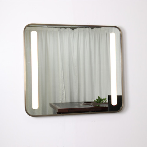 Modernes LED-Licht Anti-Fog Kupfer gebürstet Edelstahl rahmen Rechteckiger Spiegel für Badezimmer dekor für den Heim-oder Hotel gebrauch