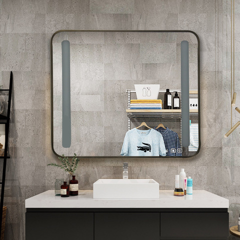 High-End Wand montage Rechteckiger Badezimmers piegel Edelstahl rahmen Doppel-Toiletten licht Doppel wand spiegel