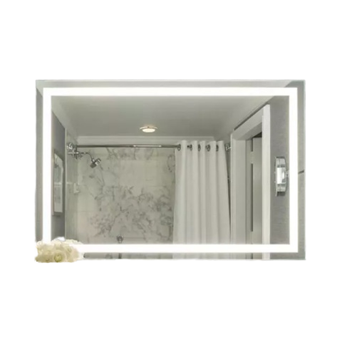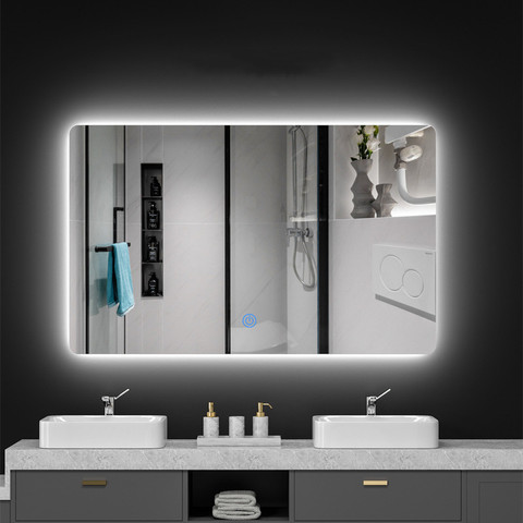 Miroir mural décoratif en verre avec gradateur de lumière blanche moderne miroir de salle de bain LED anti-buée